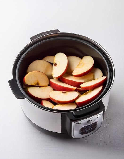 Put raw apple slices in a slow cooker with these 3 ingredients. Comfort food at its best.